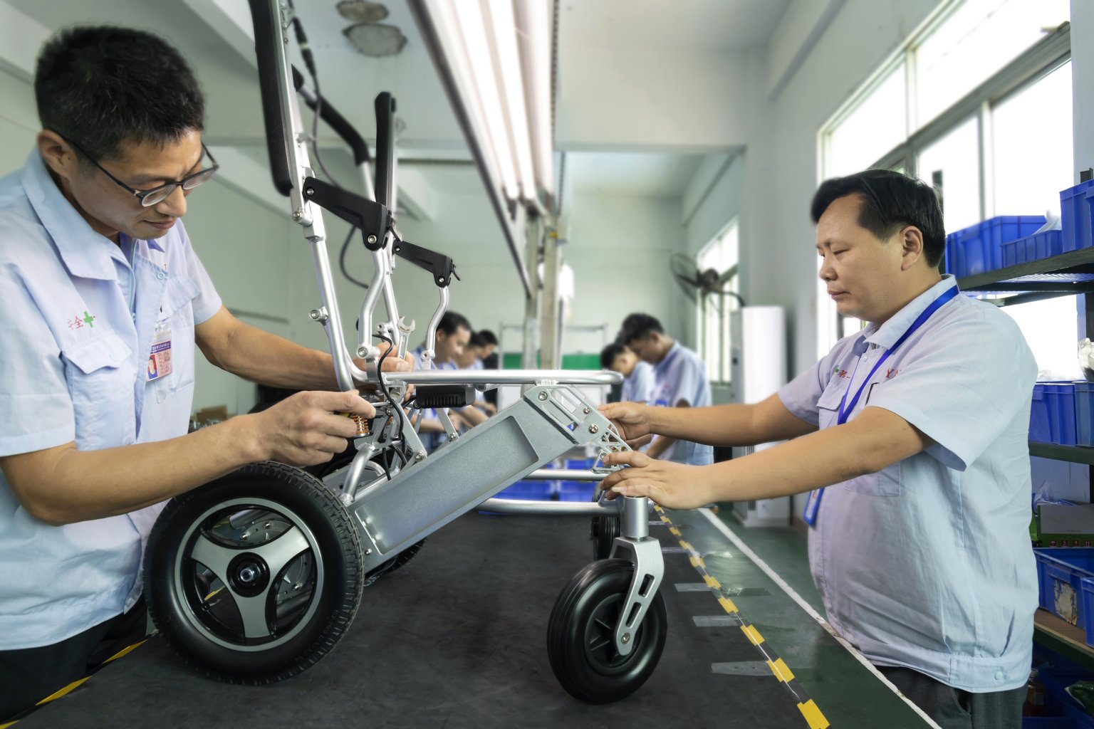 Our 50,000 sqm power wheelchair factory utilizes automated precision engineering to deliver consistent quality at scale. We control every step of the process, from frame welding to final electronics assembly.